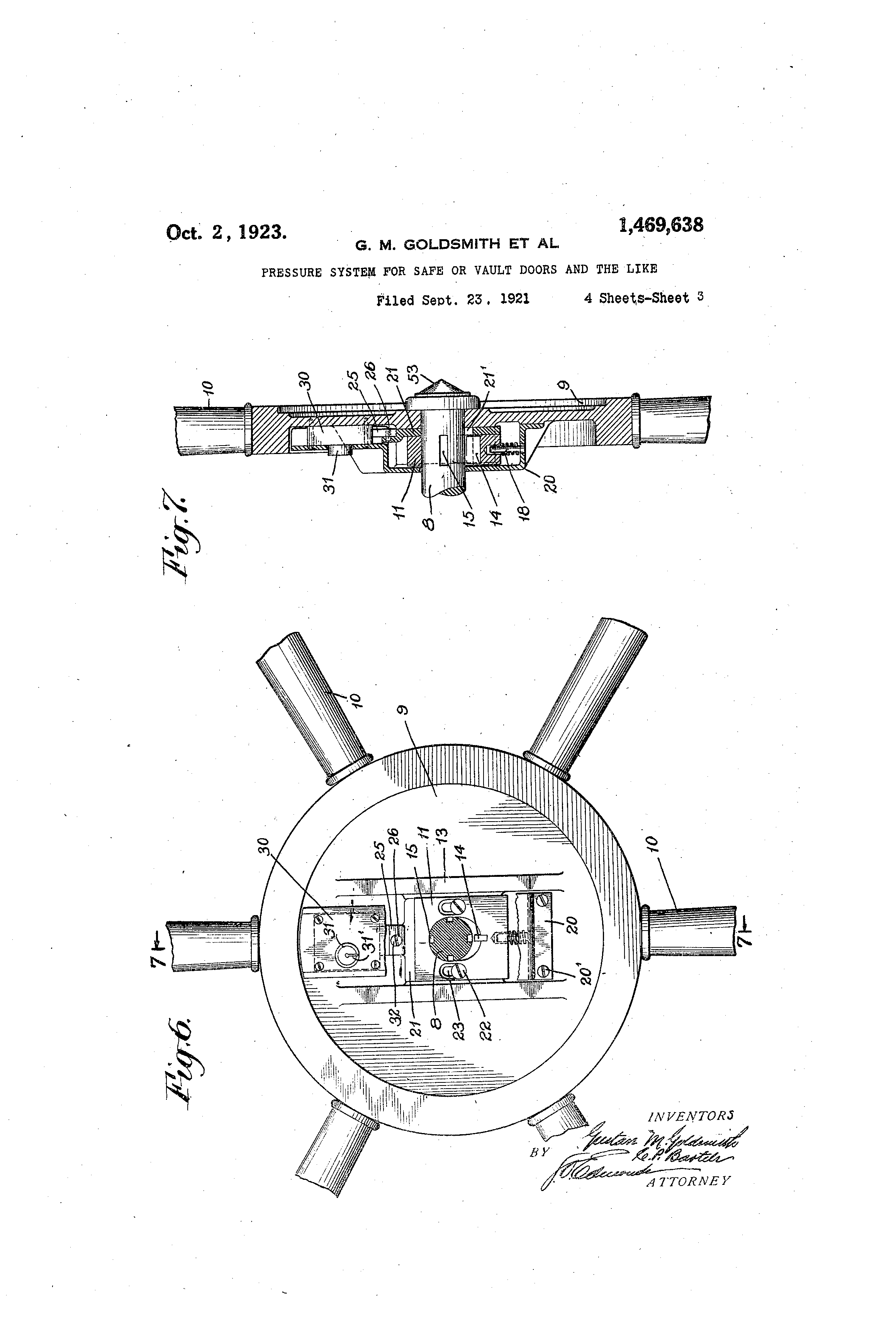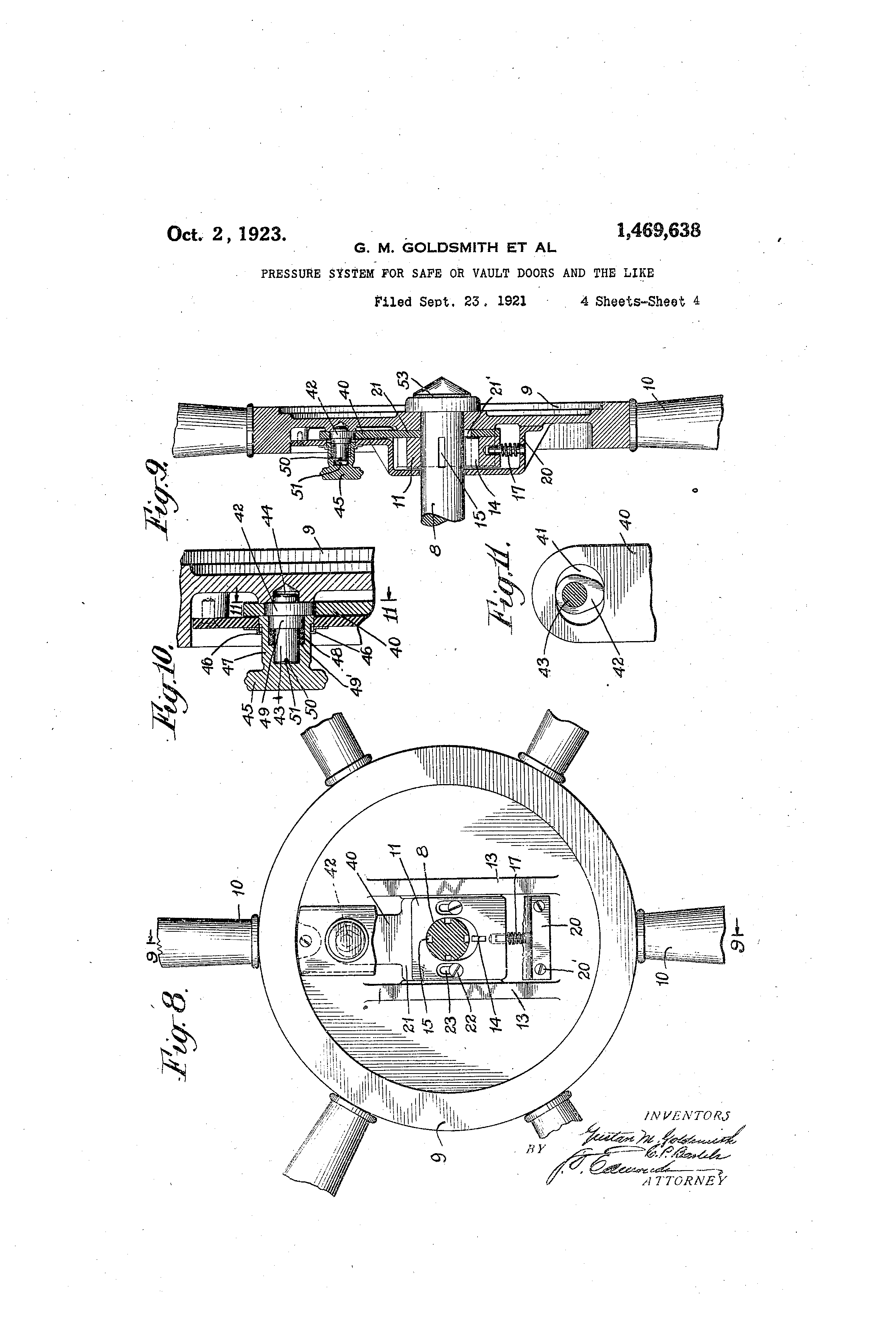 Above: Patents filed by The Mosler Safe Company, Gustave M. Goldsmith listed as principal inventor. Click to expand images. Images obtained from Google Patents.